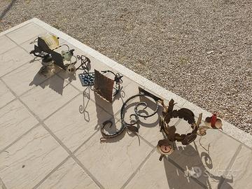 Vendo al singolo pezzo 5€ o tutto in blocco 20€, 2 oggetti ferro lavorato a mano, 3 lampadari e 3 applique da parete, tutta roba anni 60/70. qualcosa è da sistemare qualcosa no, l'oggetto più piccolo é alto 25cm il piu alto 55cm. Vendo per riciclo creativo o per applicazione, in quanto alcuni oggetti non necessitano di manutenzione, per avere foto e misure del singolo oggetto basta chiedere. Ritiro a Gruaro o Lunedì 20 ottobre a Pordenone/Aviano.