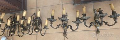 LOTTO DI 4 LUMI A MURO PARETE APPLIQUE OTTONE CANDELABRI CANDELABRO ANNI '60 Due son da 5 luci e due da 3
