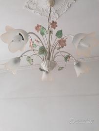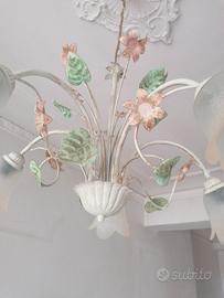 2 lampadari come nuovi 5 luci con foglie e fiori in ferro colorati tutti e 2 €60