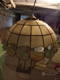 Lampadario da soffitta a doppia lampada, lavorazione a piombo con vetro cattedrale e vetro Madras euro 50+ Applique da parete stesso disegno a forma triangolare euro 30 + Lampadario in madreperla euro 30 da ritirare in zona Varcaturo Giugliano Qualiano