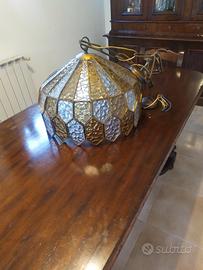 bellissimo ed elegante lampadario in vetro piombato con colori bianco giallo oro e ottone Diametro cm48 alt38