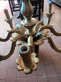 Lampadario in legno fine 900 restaurato e funzionante.