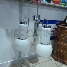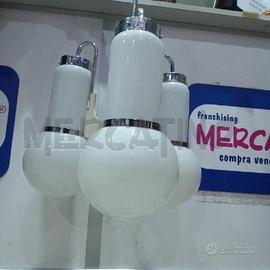 LAMPADARIO VINTAGE 3 LUCI SFERE VETRO BCO SATINATO
