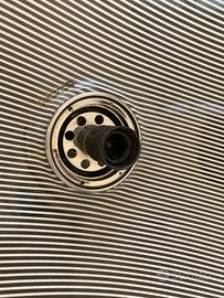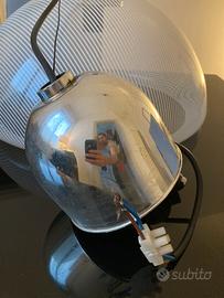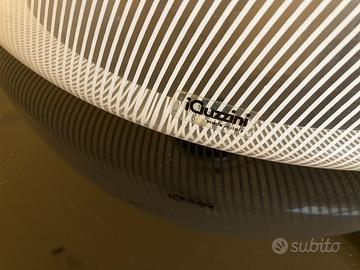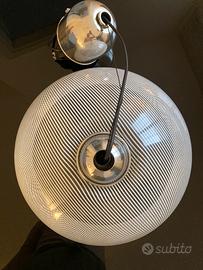 Lampadario Meblo marca Guzzini, ancora con adesivi originali. Diametro 45 cm. Resina con stampa millerighe bianca. Completo di tutte le parti. Collegamenti elettrici da verificare.