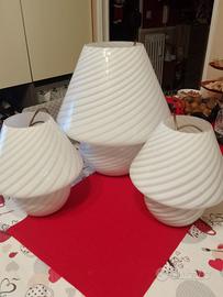 Vendo 3 lampade da tavolo in Murano bianco opalino, con elegante lavorazione a spirale. Design raffinato e senza tempo, ideali per arredare soggiorno, camera da letto o studio. Diffondono una luce calda e uniforme, perfette come lampade decorative o da comodino.