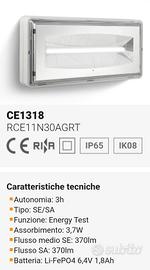 Vendo 5 lampade di emergenza professionali modello RCE11N30AGRT, NUOVE e ancora sigillate nella confezione originale.
