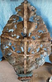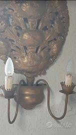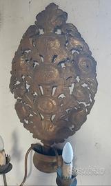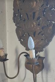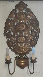Porta palme in lamierino sbalzato e dorato a decorazione floreale, XVIII secolo. Successivamente elettrificate e adattate come appliques. Altezza cm 82, larghezza massima cm 42. Ben tenute, segni dati dal tempo