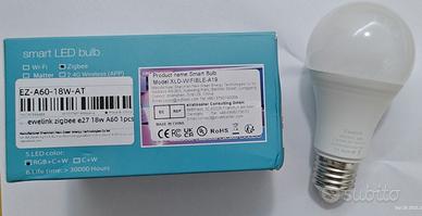 Lampadine smart ZigBee Ewelink. Specifiche tecniche Marca: Ewelink Modello: SMART A60 Alimentazione (Voltaggio): AC 100–240V Potenza: 18W (Watt) Tipo di Luce/Colore: RGB + CW-WW (Colori, Red-Green-Blue + Bianco Freddo/Caldo), luce a colori e temperatura del bianco variabile (da freddo a caldo gradualmente). Certificazioni: CE, FC, RoHS (standard europei, americani e per le sostanze pericolose). Origine: Made in China Attacco: standard a vite E27 Controllo e App Associata Le lampadine smart che utilizzano il protocollo ZigBee (che opera sulla frequenza radio 2.4 GHz) richiedono un Hub/Gateway ZigBee separato per la connessione. Se non sapete cosa sia, probabilmente questa non è la smart lamp che state cercando. La lampadina è progettata per funzionare con l'app eWeLink, la piattaforma smart home di SONOFF. NOTA BENE: Per l'uso remoto e smart, è necessario un Hub/Gateway ZigBee compatibile con eWeLink, in quanto la lampadina non si connette direttamente al tuo router Wi-Fi. Funzionalità: Tramite l'app (e dopo l'abbinamento al Gateway ZigBee) Accendere e spegnere la lampadina da remoto. Regolare la luminosità (dimmerare). Cambiare il colore (RGB) o la temperatura del bianco (CW-WW). Impostare timer e programmazioni. Creare "Scene" (combinazioni preimpostate di colore e luminosità). Controllo Vocale Compatibile con gli assistenti vocali più diffusi: Amazon Alexa Google Home / Google Assistant, tramite plugin.