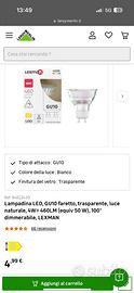 Vendo 8 lamapdine Lexman GU10 dimmerabili 50 W Luce 4000k Acquistate da Leroy Merlin ma mai usate per errato acquisto