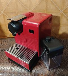 Macchina da caffè Nespresso LATTISSIMA TOUCH De Longhi - Mod. EN550.R – colore Rosso. In Perfette condizioni, PRATICAMENTE NUOVA in tutto - SENZA ALCUN SEGNO o GRAFFI - Usata pochissime volte!! Comunque, per una maggior garanzia di perfetto funzionamento futuro, è stata accuratamente smontata e ripulita; quindi è stata igienizzata ed è stato fatto il trattamento di decalcificazione, in special modo della delicata parte della sede della capsula e del beccuccio. Infine è stata testata a dovere in ogni sua funzionalità. Praticamente questa macchina è NUOVA, senza alcuno problema di malfunzionamento, come uscita dalla fabbrica. Questa meravigliosa macchina funziona anche con capsule compatibili Nespresso, ed in più, oltre a fare dei fantastici e cremosi espressi, è speciale per fare, con grande rapidità degli ottimi cappuccini o latte macchiato con una schiuma molto densa, in completa autonomia PREMENDO un solo tasto. Completa dunque di Cappuccinatore per montare il latte e di manuale per istruzioni. PRODOTTO NUOVO E GARANTITO NEL TEMPO Per dimostrare la certezza di un prodotto garantito, sono disponibile al suo reso, entro 10 giorni, in caso di constatazione di malfunzionamento (….ma ritengo ciò improbabile!!) P.S.: Inoltre, darò consigli post vendita, di manutenzione specifica, per una qualità di caffè sempre al TOP e per una grande longevità della stessa macchina.
