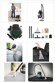 Permette di immettere lo shampoo di lavaggio e di aspirare i liquidi e i residui di sporco,polvere negli angoli e nei lati più difficili grazie agli accessori inclusi in dotazione.