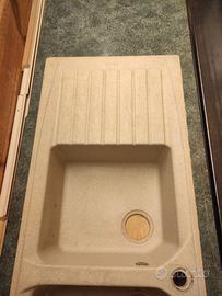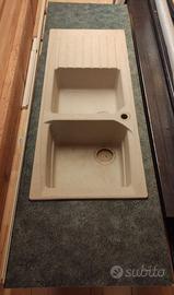 Lavandino da cucina usato marca FRANKE con due vasche + sgocciolatoio completo di scarichi e rubinetto con miscelatore e tubi flessibili.