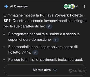 Vendo lavapavimenti a secco per folletto per cambio aspirapolvere