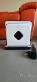 Vendo lavapavimenti automatica marca Irobot, modello Braava 390T. Può essere impostato in modalità di pulizia a secco (Sweep) o pulizia a umido (Mop) e pulisce e lava i pavimenti utilizzando i panni di pulitura riutilizzabili in dotazione. Può anche utilizzare panni usa e getta, come lo Swiffer. Peso estremamente contenuto (solo 1,8 Kg), può essere facilmente trasportato senza alcuna fatica. È semplicissimo da usare: è sufficiente infatti applicare alla sua piastra di pulizia rimovibile un panno (umido o asciutto), metterlo a terra e premere il tasto “Start”. A tutto il resto penserà lui: inizierà subito a passare il panno sul pavimento per poi, a pulizia terminata, ritornare autonomamente da dove è partito. Contenuto della confezione: -1 iRobot Braava 390T -1 cubo di navigazione NorthStar e batterie tipo “C” -1 piastra di pulizia a secco -1 piastra di pulizia a umido (Pro-Clean Reservoir Pad, piastra di pulizia per il lavaggio ad acqua con serbatoio) -2 panni in microfibra per la pulizia a secco originali -2 panni in microfibra per la pulizia a umido originali + 3 panni compatibili -1 base di ricarica turbo Condizioni come nuovo, perfettamente funzionante. Consegna a mano zona Monza Brianza e Lecco, spedizione disponibile in tutta Europa