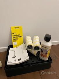 Vendesi lavapavimenti Karcher FC7, usata pochissimo (acquistata febbraio 2024), 4 rulli nuovi aggiuntivi e una confezione di detersivo per parquet.