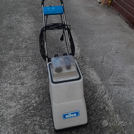 Lavapavimenti Nilco Mod. 1227. Macchinario in buono stato, con possibilità di vederla in funzione . La macchina lava tramite una spazzola rotante ed aspira il liquido sporco. Disponibili 2 pezzi 1 attrezzato per pavimenti e 1 per moquette.