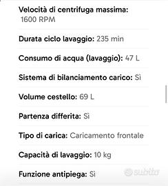 Tutta la descrizione e le caratteristiche della lava asciuga sono presenti nelle foto prodotte nell’annuncio. Grazie, grazie mille.