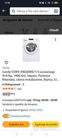 Vendo causa inutilizzo lavasciuga Candy 9/6 kg. Comprata a febbraio 2023 e usata pochissime volte poiché in un'abitazione di residenza estiva. Non spedisco, ritiro a carico dell'acquirente.