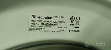 Vendo lavasciuga Electrolux, modello come da etichetta in foto, con cuscinetto cestello rotto. Macchina funzionante ideale x ricambi.