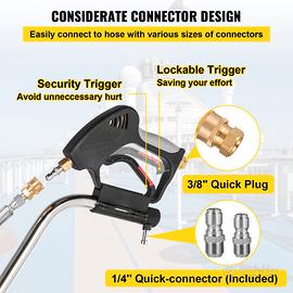 · Ottima Compatibilità: il pulitore con la pistola a grilletto risparmia manodopera sulla lavasciuga pavimenti dell'idropulitrice. Questa pistola a grilletto può essere facilmente collegata a un tubo con un connettore da 3/8'' (NON INCLUSO). Inoltre, sono forniti 2 adattatori di connettore rapido da 1/4''.