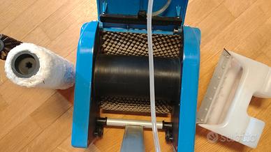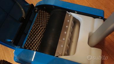 Perfettamente funzionante, usata poche volte compresa di spazzola bianca anteriore + marrone posteriore, pari al nuovo, per superfici perfettamente lisce del valore di 112 euro. Ottima per piastrelle ruvide con fughe larghe ma sostituendo le spazzole in pochi istanti, niente può temere.