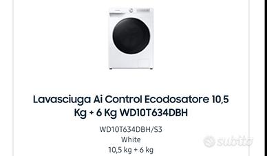 Vendo Lavasciuga Samsung WD10T634DBH per pezzi di ricambio. Scheda madre non funzionante. 10,5kg lavaggio 6 kg asciugatura