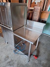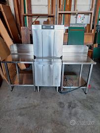 N.1 lavastoviglie SMEG a passaggio in ottime condizioni completa di due banchi in acciaio per entrata ed uscita misura totale 200x80