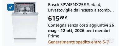 Bosch SPV4EMX25E Serie 4, Lavastoviglie da incasso a scomparsa totale, Home Connect, EfficientDry, TimeLight: Indicatore luminoso, Programma Preferito, 45 cm
