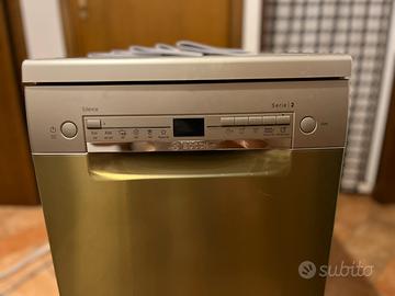 Vendo lavastoviglie Bosch Serie 2 slim 45 cm, colore inox, in ottime condizioni. Modello: SPS2HKI59E Capacità: 9 coperti Classe energetica: E Rumorosità: 46 dB Consumo acqua: 8,5 L Lavastoviglie ben tenuta, pulita internamente ed esternamente, completa di cestelli, tubo e manuali come da foto. Ideale per appartamenti o cucine con poco spazio. Ritiro a mano in zona Treviso . Per info scrivimi in privato.