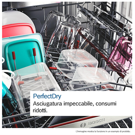 - Tecnologia Perfect Dry: Asciugatura perfetta grazie alla Zeolite (efficace anche per stoviglie di plastica).