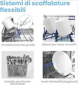 【Spazio flessibile】 - Grazie ad un sistema di scaffalature flessibile e pratico, la lavastoviglie può contenere fino a 67 pezzi di stoviglie e i piatti fino a un diametro di 250 mm. Con una capacità per 6 diversi scompartimenti, il prodotto ha una dimensione perfetta per essere utilizzato da un massimo di 2-3 persone.