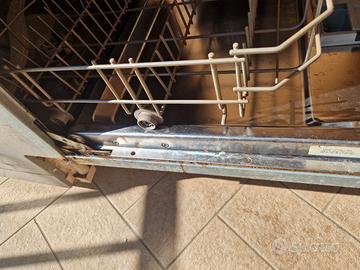 Lavastoviglie ariston hotpoint funzionante presenta segni di usura e manca una ruota che fa scorrere il cestello inferiore come si vede in foto