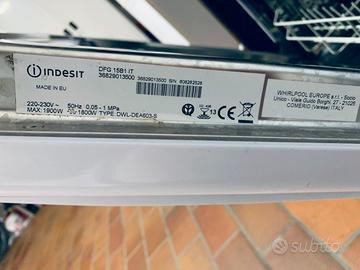 Vendo lavastoviglie , marca Indesit, modello DFG 15B1 IT . Dimensioni 60 x 60 x H. 65. 12 coperti , 5 cicli lavaggio. Sia la vasca interna che le guarnizioni sono in ottime condizioni, è completa di tubi di scarico. Pulita e pronta x l'uso. Il carico è comodo in quanto si trova a un piano terra. Non è da incasso ma togliendo il top lo diventa.