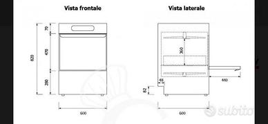 Lavastoviglie Elettromeccanica Monofase cesto 500x500mmxH360mm con dosatore brillantante e detergente con pompa di scarico