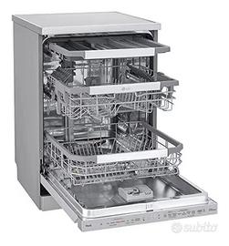 Vendo causa trasloco lavastovigle a libera installazione LG DF455HSS, Serie 4, 14 coperti, Sistema QuadWash a 4 Bracci Irroratori, Vapore TrueSteam, Apertura Automatica della Porta, 3° Cestello per le Posate e Wi-Fi. Ha un anno di utilizzo ed e in buone condizioni. Presenta piccoli segni di usura. Prezzo trattabile.