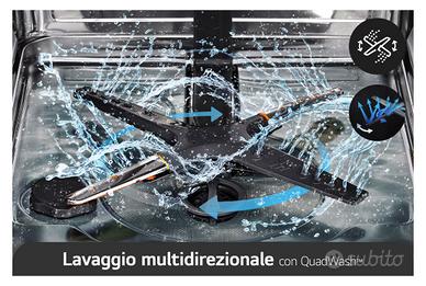 Sistema QuadWash™: i 4 bracci irroratori con movimenti multidirezionali permettono all'acqua di raggiungere ogni angolo delle stoviglie