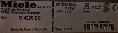 Vendo lavastoviglie marca Miele perfettamente funzionante ed usata molto poco. Il modello è il G 4220 SC (14 coperti con terzo cassetto portaposate, vasca in acciaio inox, chiusura ComfortClose (lo sportello resta in qualsiasi posizione), programmi a basso consumo energetico, ecc.. Solo ritiro a mano (no spedizione). Per altre info o foto contattatemi.