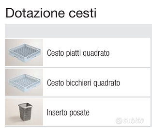 In dotazione, nuovi n.1 cesto piatti e n.1 cesto bicchieri + n.1 inserto posate.