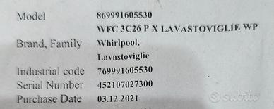 Vendo lavastoviglie a libera installazione Whirlpool modello WFC 3C26 P X in finitura Acciaio Inox, acquistata a fine 2021. L'elettrodomestico è in ottime condizioni estetiche e perfettamente funzionante. È un modello molto ricercato per la sua grande silenziosità e l'efficacia del sistema 6° Senso (regola i consumi in base allo sporco). Caratteristiche principali: Capacità: 14 coperti (ampio spazio interno). Tecnologia PowerClean Pro: getti d'acqua potenziati per lo sporco ostinato. Silenziosità: Solo 46 dB (ideale per cicli notturni). Finitura: Acciaio Inox anti-impronta. Manutenzione Straordinaria eseguita a febbraio 2026 Per garantire la massima affidabilità, sono stati appena sostituiti da tecnico specializzato: - Resistenza nuova (riscaldamento acqua perfetto). - Pozzetto nuovo (massima igiene e zero perdite). Questi interventi rendono la macchina affidabile come una nuova, risolvendo preventivamente i componenti più soggetti a usura. Prezzo: 170€ (leggermente trattabili) Motivo della vendita: passaggio a modello a incasso. Disponibile per il ritiro a Spinazzola, entro fine maggio 2026. Non effettuo spedizione viste le dimensioni. Dimensioni: 84,5 cm altezza, 59 cm larghezza, 59 cm lunghezza.