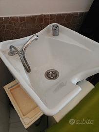 propongo poltrona lavatesta con alza gambe elettrico e massaggio Shiatsu, plastiche soltanto ingiallite ma con prodotto adeguato possibile ripristinare il bianco.