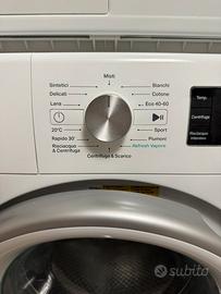 Come nuova. Dimensioni 60,5P x 59,5l x 85H cm. Classe tispsrmio emergetico “A”. Tra le varie funzioni ha anche rilevamento schiuma, sbiancamento e “aggiungi indumento” (possibilità di mettere in pausa anche durante il lavaggio).