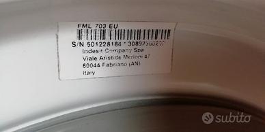 Vendo per recupero pezzi di ricambio lavatrice Ariston mod. FML703 EU, come da foto. Perde acqua causa cuscinetti del cestello. Scheda quasi nuova