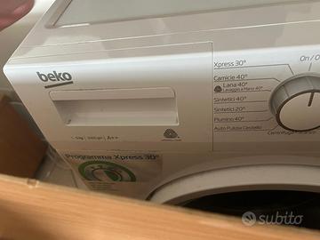 Lavatrice Beko a carica frontale 5kg 1000 giri classe A++. In ottime condizioni, perfettamente funzionante, codice WTX51L021W, con 15 programmi tra cui eco 40-60° e pulizia cestello. Con tecnologia Optisense che adatta il lavaggio in base al carico e funzioni di sicurezza quali il blocco bambini e la regolazione automatica dell'acqua. Dimensioni: larghezza 60cm, profondità 45cm, alltezza 84cm. Ritiro a carico del compratore , non si spedisce.