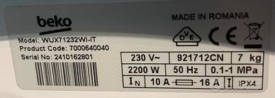 Lavatrice beko mod. WUX71232WI-IT acquistata da meno di due anni. Vendo per cambio abitazione. Perfettamente funzionante. Disponibile da fine febbraio.