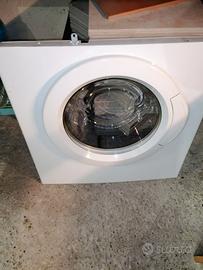 Sportello anteriore con oblò, guarnizione oblò, motore, elettrovalvola di carico, trasformatore, pompa scarico acqua, trappola d'aria, tutti i fastom scollegati con cura e segnati con pennarello per rimontaggio. Viterie e cassetto detersivi più collegamento al cestello compresi.