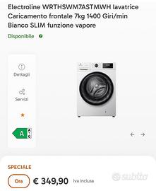 Vendesi lavatrice Electroline 7kg tenuta pari al nuovo, usata forse 20 volte. Tenuta in secondo appartamento. Misure molto rare! Prezzo leggermente trattabile.