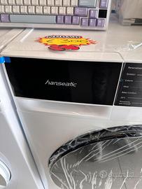 Lavatrice hanseatic nuova con la garanzia, da 8 kg, con una velocità di centrifuga di 1400 giri/min, Offre prestazioni di lavaggio silenziose, un consumo d'acqua accettabile, rendendola una scelta funzionale per l'uso quotidiano, sebbene il consumo energetico nel programma ECO 40-60 sia considerato medio-alto.