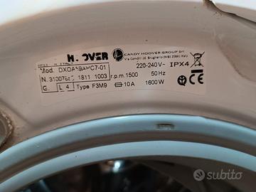 Vendo Lavatrice hoover modello DXOA59AHC7-01 funzionante ma con cuscinetti vasca da sostituire. Vendo per ricambi