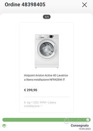 Vendiamo lavatrice Hotpoint Ariston da 8 kg acquistata il 13/09/2023, praticamente nuova e perfettamente funzionante. La cediamo solo perché dobbiamo trasferirci.