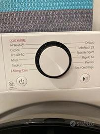 Lavatrice 10kg AI DD™ | Serie R5 Classe A-10% | 1400 gir. Funzione Turbo Wash 360 (lavaggio ultra-efficiente in soli 39 minuto). Programma Allergy Care (lavaggio ad alte temperature che riduce del 99,9% gli acari della polvere) Mezzo carico. Partenza differita. Lavaggio a vapore, Inverter Direct Drive. Colore bianco e oblò nero in vetro temperato. Larghezza 60cm, Profondità 56,5cm, Altezza 85cm. Come nuova acquisto Ottobre 2025. Vendo per cambio spazio di ubicazione (mi occorre una slim!). Ritiro a carico dell'acquirente.